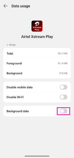 行きます設定>アプリ> whatsapp>データ使用量「バックグラウンドデータ」の横にあるトグルスイッチをオフにします。