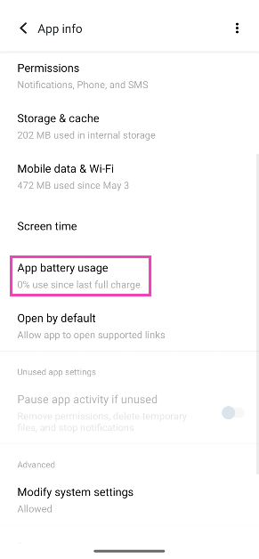 アプリが大量のバッテリーを使用していると感じたら、設定>アプリ、それを選択し、「バッテリー」をタップし、「制限」を選択します。