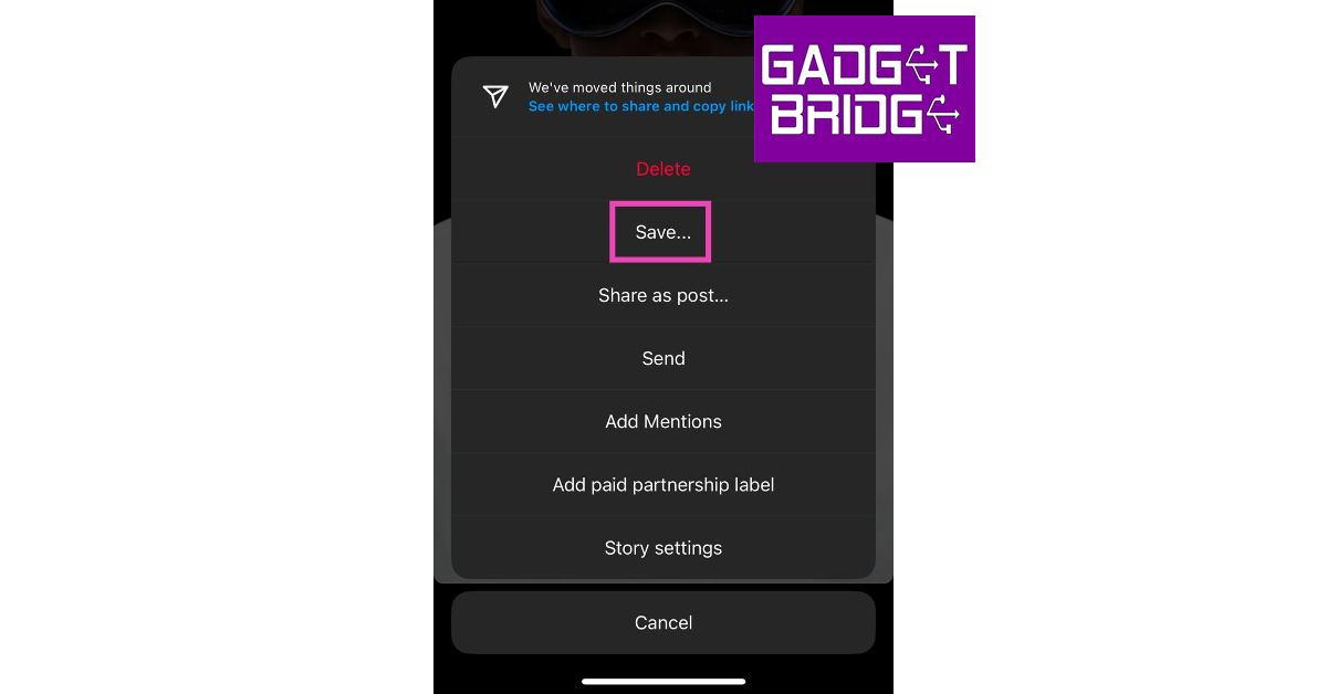 Instagramストーリーをダウンロードするには、画面の右下隅にある「more」アイコンをタップして、「写真/ビデオを保存」を選択します。