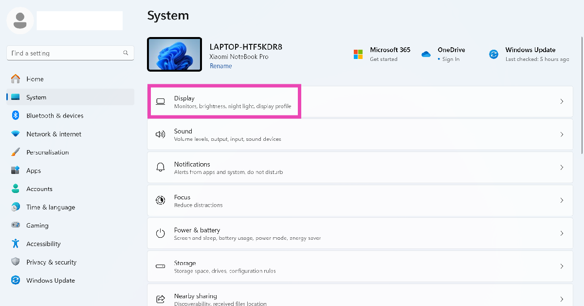 ステップ1:行きます設定選択しますシステムサイドバーから。