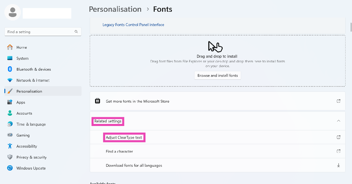 ステップ4:クリックしてくださいClearTypeテキストを調整します。