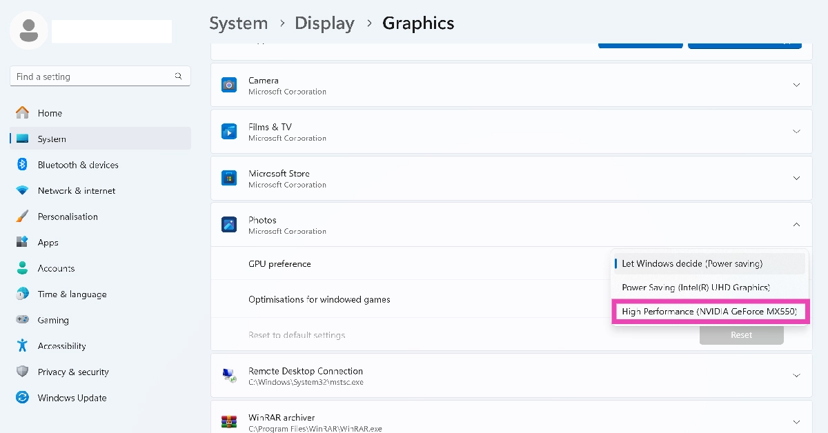 特定のアプリ内でぼやけた画面の問題が発生している場合は、GPUの好みを「高性能」に設定します。これが方法です。