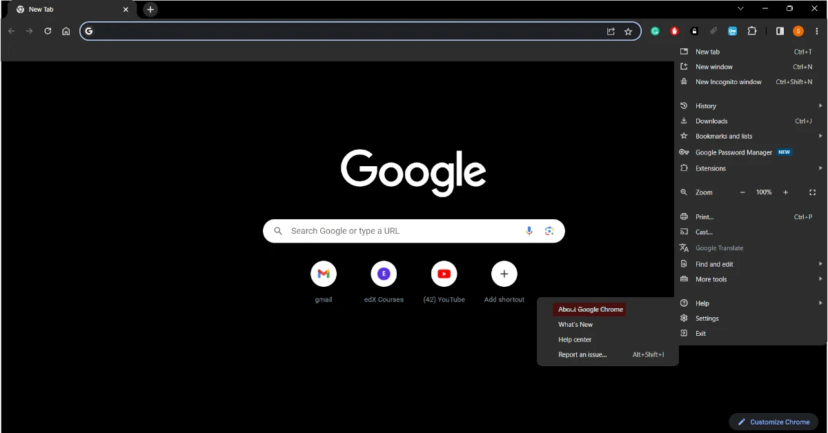 ステップ2:サブメニューから、クリックしますGoogle Chromeについて。
