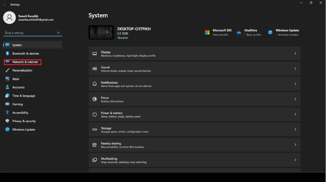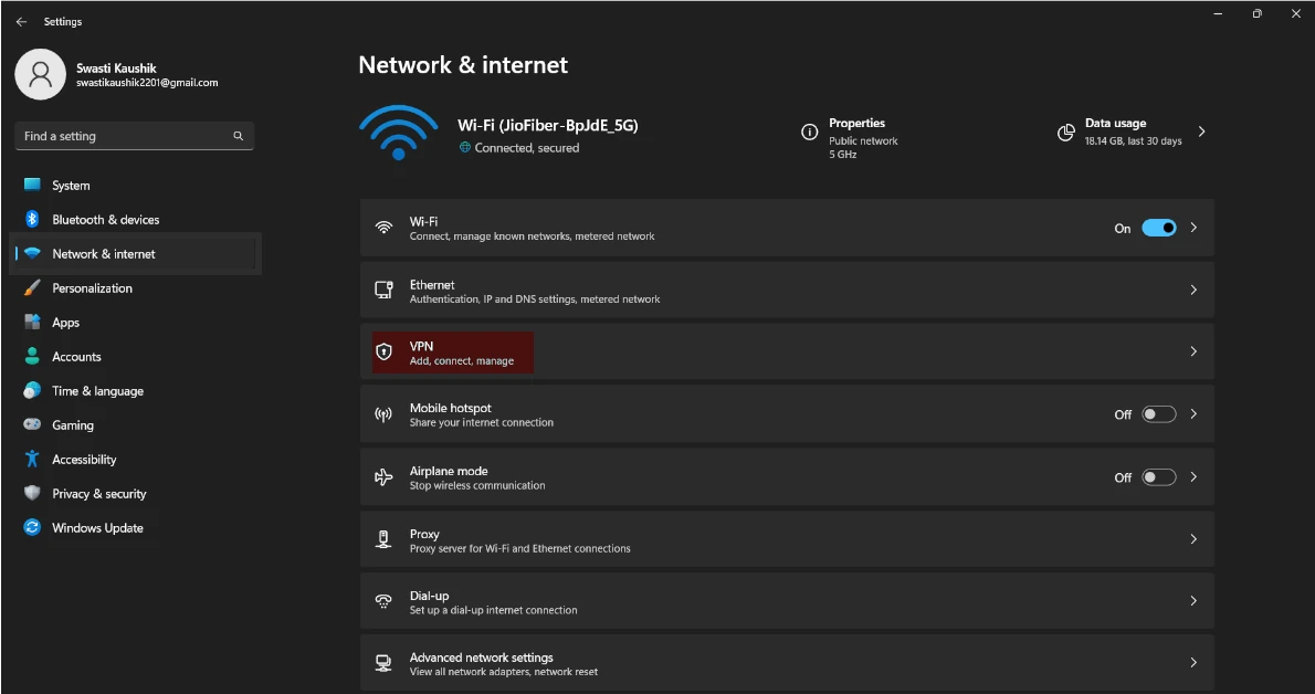 ステップ2:選択しますネットワークとインターネット、そして押しますvpn。