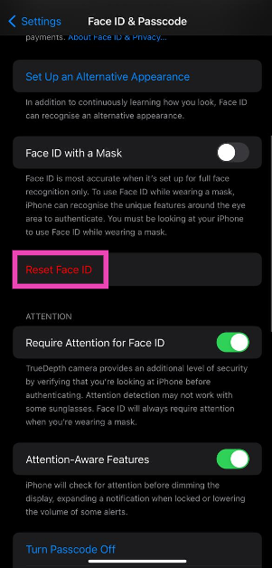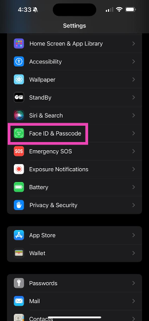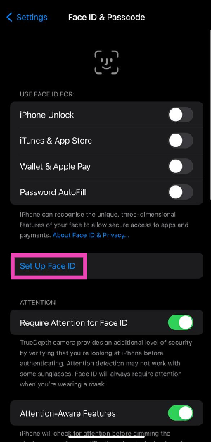 ステップ3:戻ってくださいフェイスIDとパスコード。