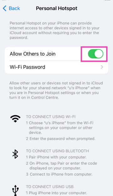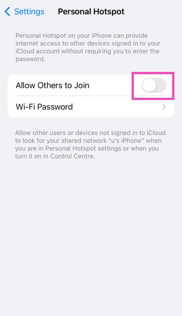 個人的なホットスポットをオフにしてから戻してから、それをオンにすると、動作を防ぎます。これがあなたがそれをする方法です。
