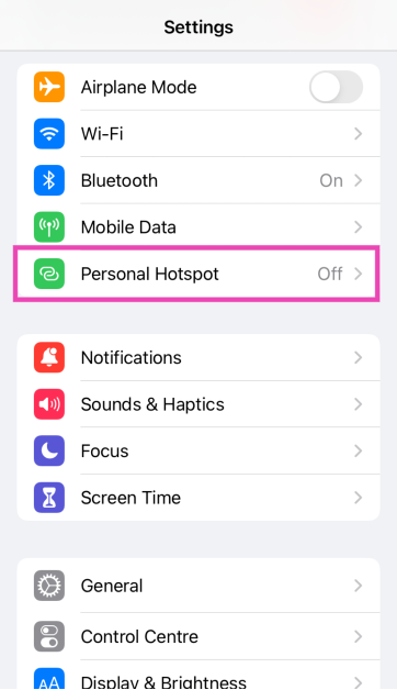 行きます設定>モバイルデータ>パーソナルホットスポット「互換性を最大化する」の横にあるトグルスイッチをオンにします。これにより、ホットスポットが2.4 GHz波長に切り替わります。