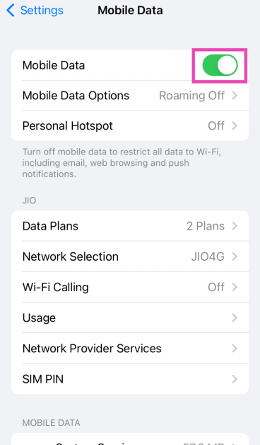 ステップ2:振り向くオフ次のトグルスイッチモバイルデータ。