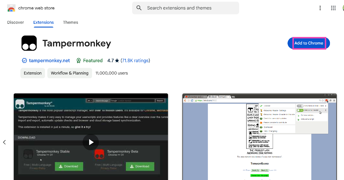 ステップ1: ダウンロードTapermonkey拡張機能Chrome Webストアから。