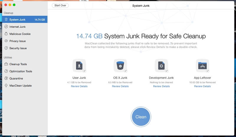 MacCleanはさまざまな方法でMacをクリーンアップできます。