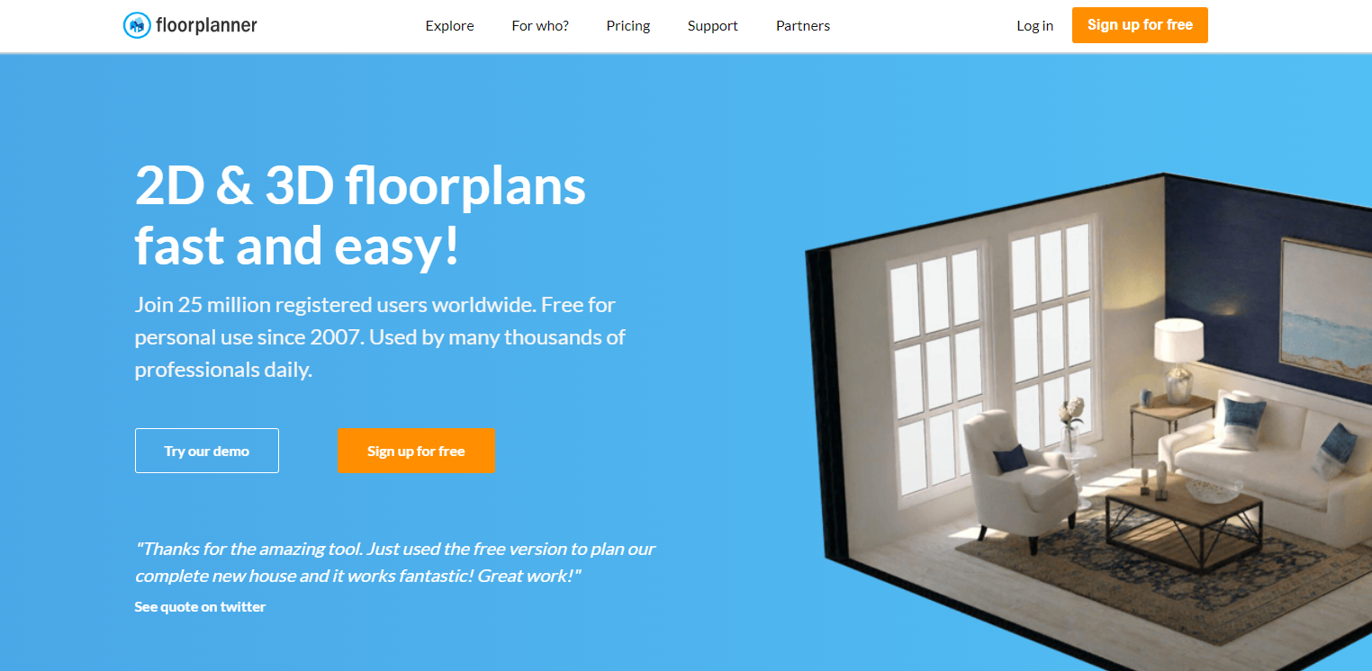 フロアプランナー| 2Dおよび3Dフロアプランの描画用の無料のアーキテクチャデザインソフトウェア