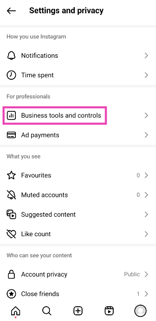 ステップ4:タップしますビジネスツールとコントロール。