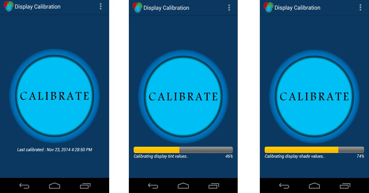 画面全体をカバーする緑色の色合いに気付いた場合、キャリブレーションが不十分なディスプレイが原因である可能性があります。サードパーティのようなアプリを使用して、再調整できます。アプリを起動したら、ヒットしますキャリブレーションボタン。アプリは、ディスプレイの色合いとシェード値を校正し、バランスを復元します。