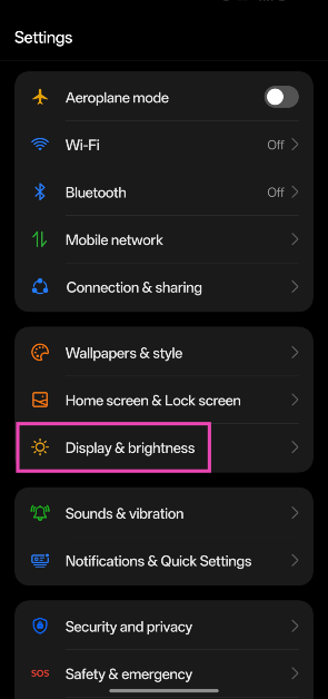 ステップ1:行きます設定選択します表示と明るさ。