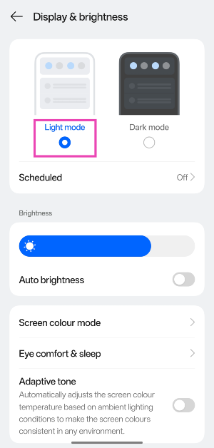 ステップ2:タップしますライトモード。