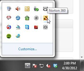 ステップ1:開始するには、ダブルクリックしますノートン360画面の右下隅にあるシステムトレイのアイコン。