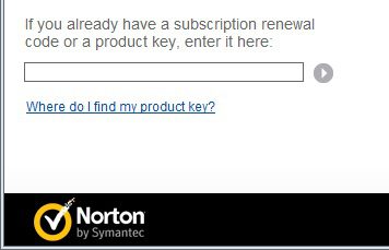 ステップ3:新しいNorton 360パッケージに含まれているプロダクトキーを入力し、ウィンドウの下部にある空白フィールドに入力し、[矢印]ボタンをクリックします。
