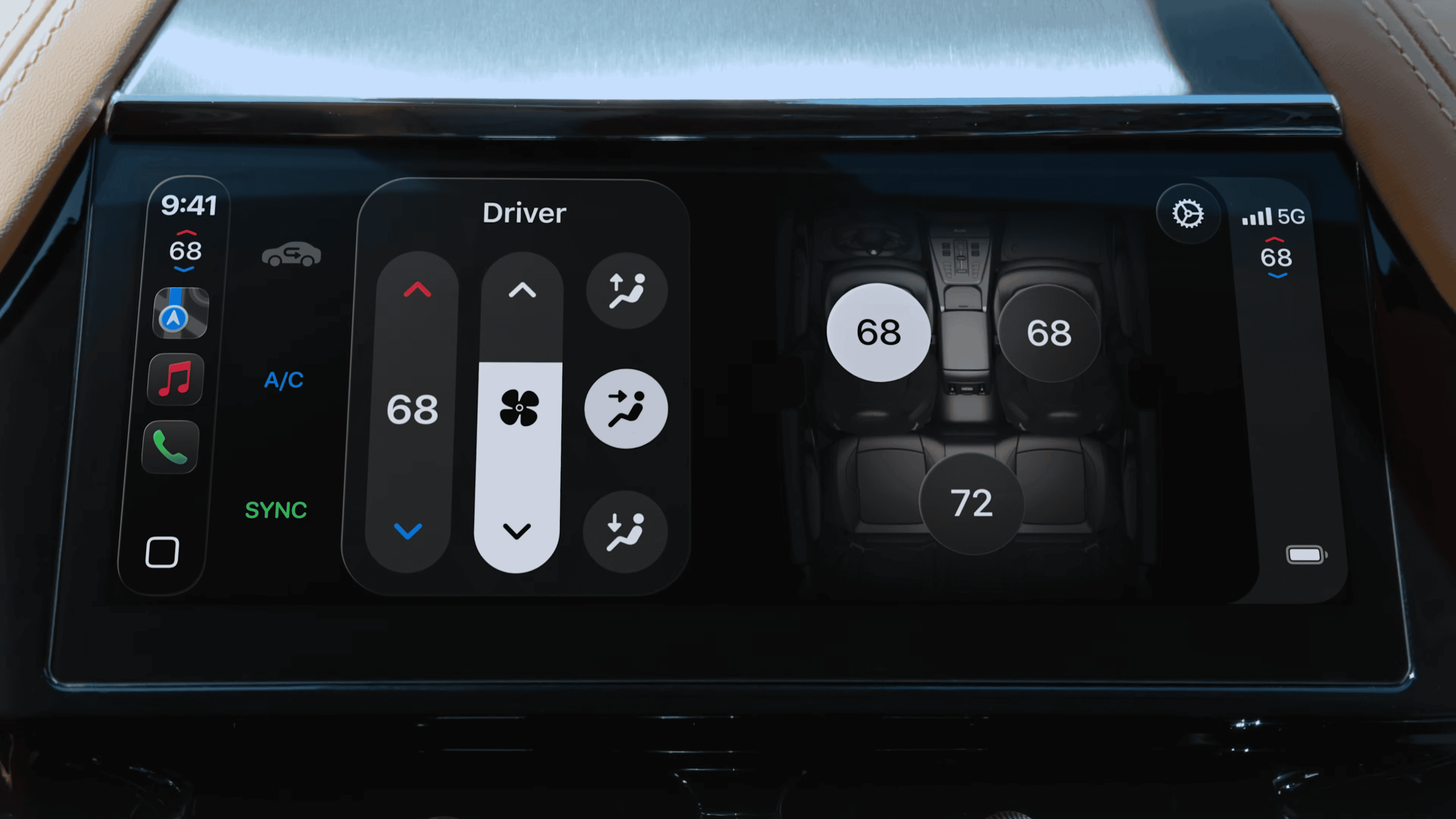 また、ユーザーが制御できますコア車両機能- 気候制御、座席設定、オーディオシステムを含む - どちらかを直接入力をタッチしますまたはSiri Voiceコマンド。基本的に、iPhoneはキャビン内のほぼすべてのインタラクティブな要素を動かし、管理しています。