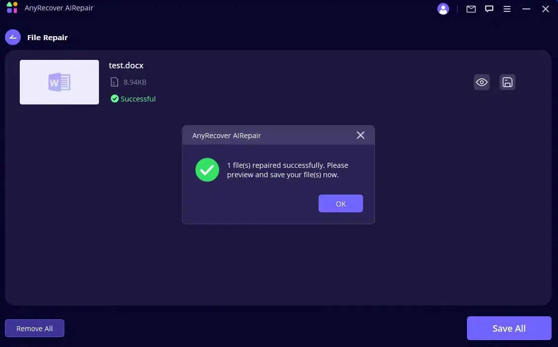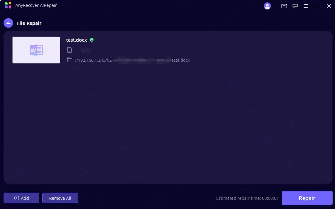 AnyRecoverは、どのように破損しても、重要なファイルが迅速かつ効率的に復元されることを保証します。次の手順に従って、Any Recover Airepairでファイルを修理します。