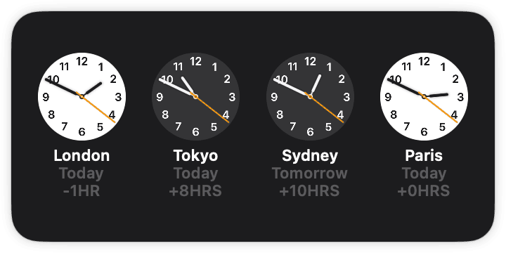 世界中に友人や家族が点在している場合、World Clock Widgetを使用すると、時間のゾーンを瞬時に見ることができます。今が電話するのに良い時期であるかどうかを正確に知っています。