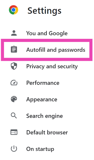 ステップ3:カーソルをに移動しますパスワードとオートフィル。