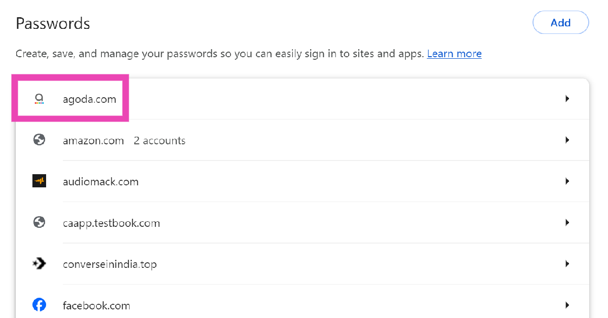 WebブラウザでGoogle Password Manager Webページを開くことができます。 Googleアカウントを使用してサインインして、保存されたパスワードを表示します。