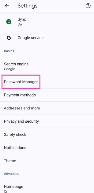 ステップ4:下にスクロールして選択しますパスワードマネージャー。