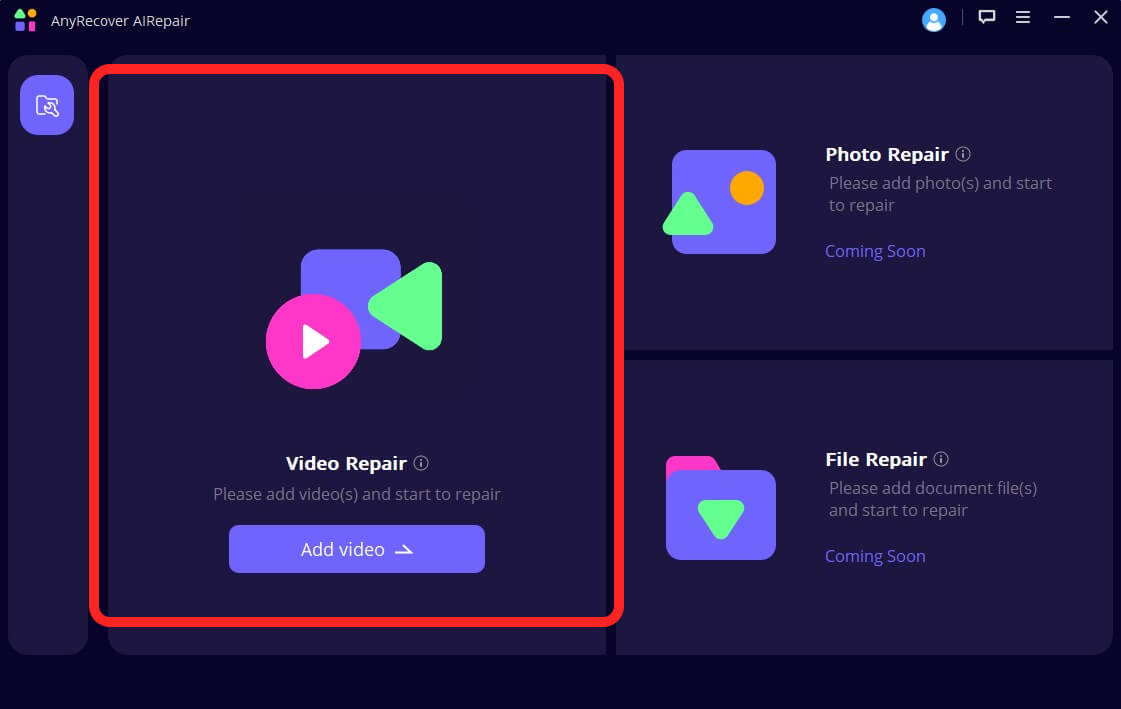 デバイスでRecover Airepairを起動してくださいビデオの修理セクション、クリックしますビデオを追加します、修正したい破損したビデオ録画を選択します。