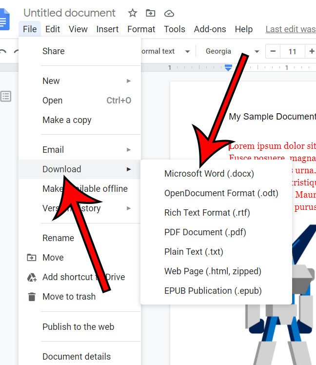 Google DocsファイルをMicrosoft Word .Docxファイル形式で保存する方法がわかったので、MicrosoftのWord-Processorと互換性のある形式でドキュメントのコピーのダウンロードを開始できます。