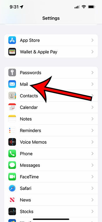 ステップ2:下にスクロールして、メールオプションを選択します。
