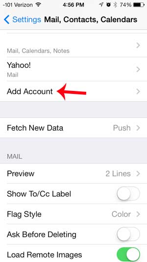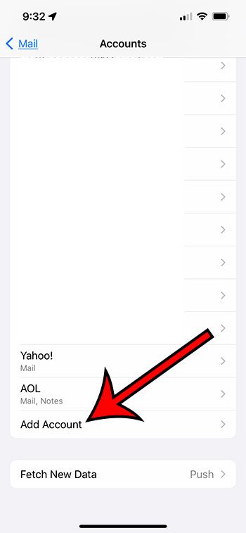 ステップ4:デバイス上の現在の電子メールアドレスのリストの下にアカウントの追加をタップします。