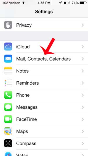 ステップ2:下にスクロールして選択しますメール、連絡先、カレンダーオプション。