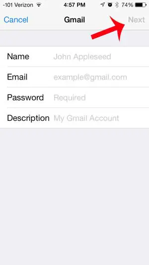 デバイス上のGmailにアクセスする各アカウントのiPhoneのメールメニューでアカウントのセットアッププロセスを完了する必要があります。