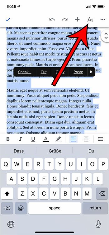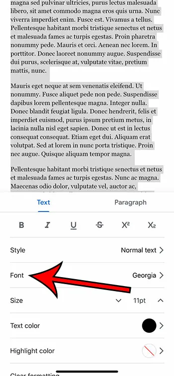 私たちの記事は、これらの手順の写真を含むGoogle Docs iPhoneアプリのフォントの変更に関する追加情報を以下に続けます。