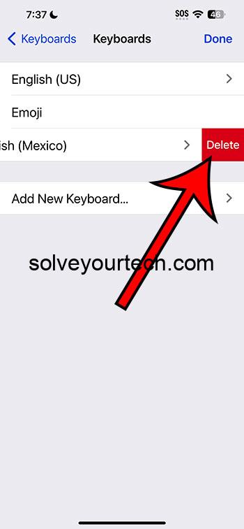 - 削除するキーボードの左にスワイプして、「削除」をタップします。