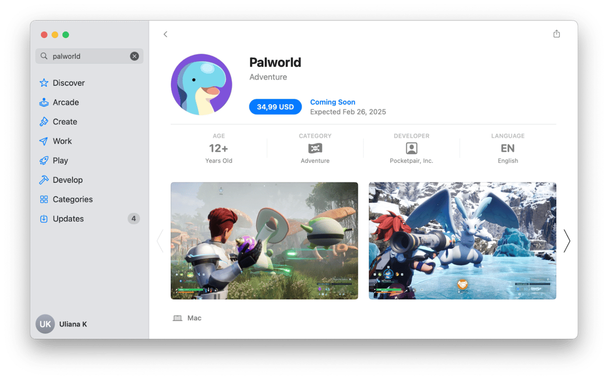 Palworldが発売されたとき、Macバージョンは2024年後半にリリースされる予定でした。その後、2025年2月下旬まで遅延し、執筆の瞬間にApp Storeで「2025年2月26日が予想される」と書かれています。しかし、Palworldはリリース前にMacで実行できますか?はい、そのため、それほど長く待たない場合、またはSteamでWindowsバージョンを既に購入していて、Macバージョンが出てきたときに購入する必要がない場合は、MacでPalworldをプレイする方法がいくつかあります。