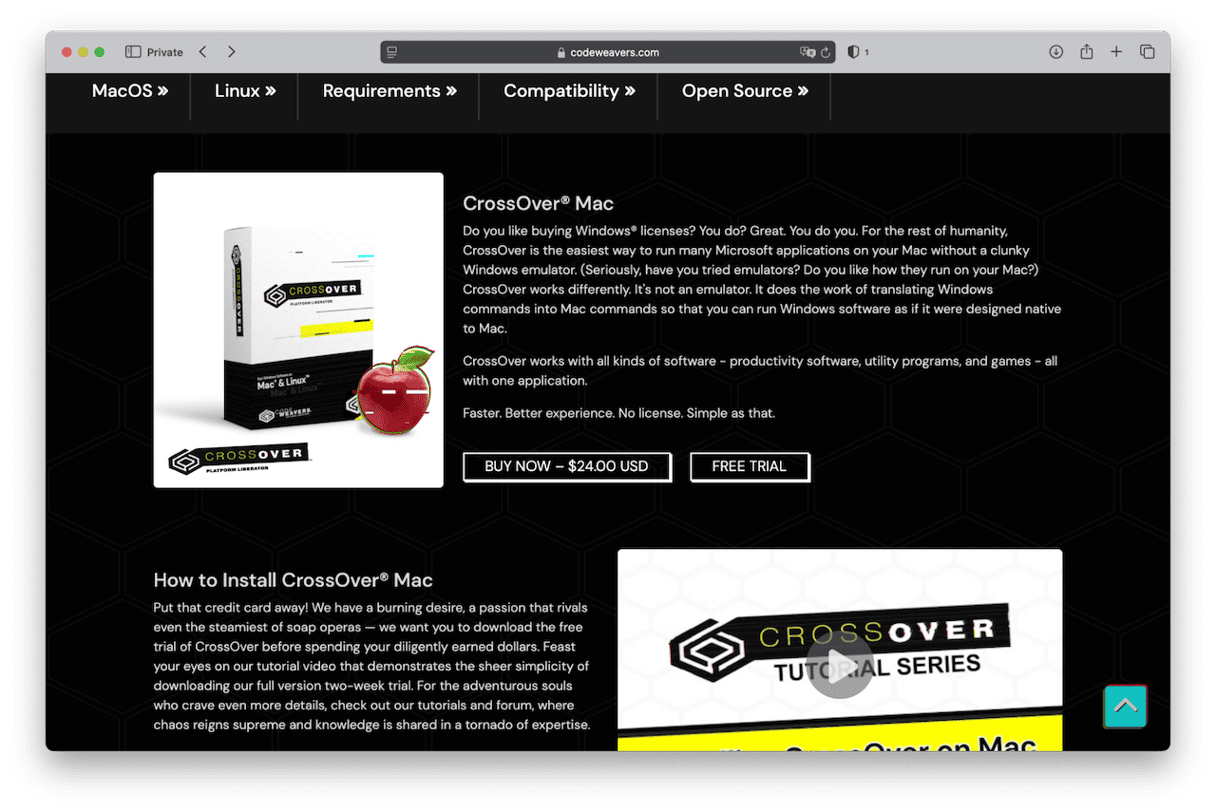 他の2つの方法は、Appleシリコンを使用してMacで動作します。これらのメソッドの最初のものは、互換性レイヤーを使用します。理論的には、いくつかのワインベースの互換性レイヤーのいずれかを使用できますが、使用するのが最も簡単なので、クロスオーバーを使用してそれを行う方法を示します。