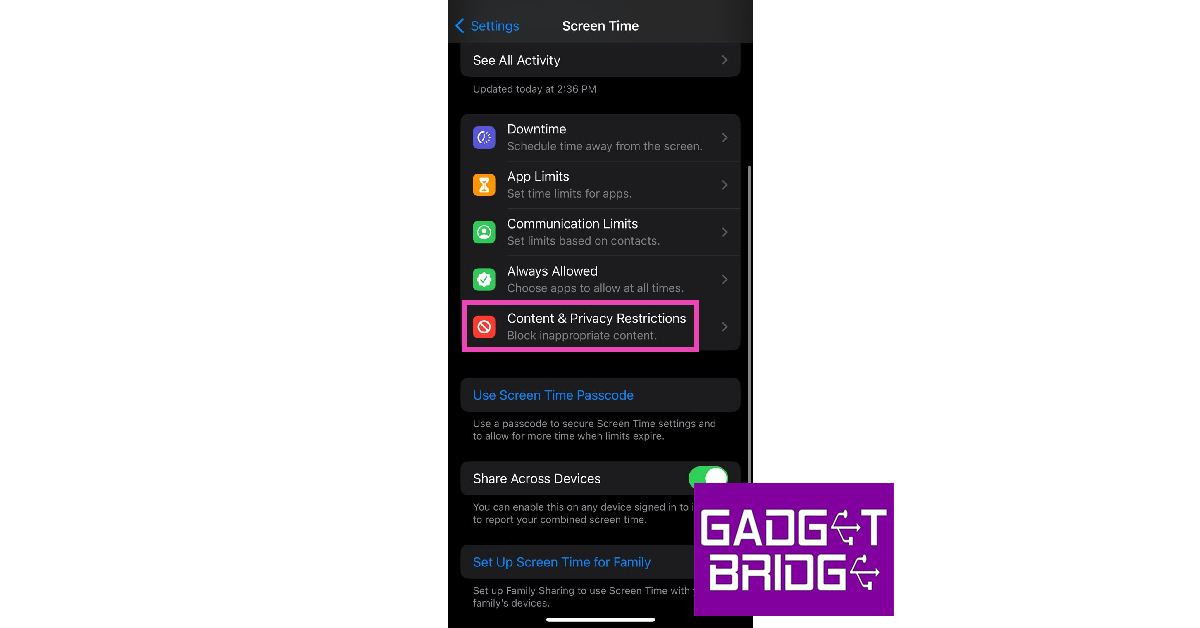 ステップ2:タップしますコンテンツとプライバシーの制限。