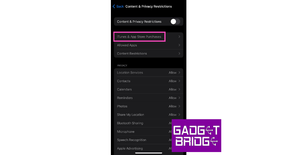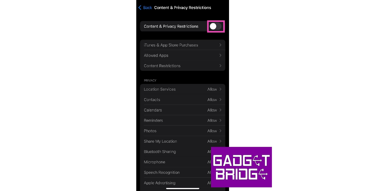 ステップ3: 消すトグルスイッチのためにコンテンツとプライバシーの制限。