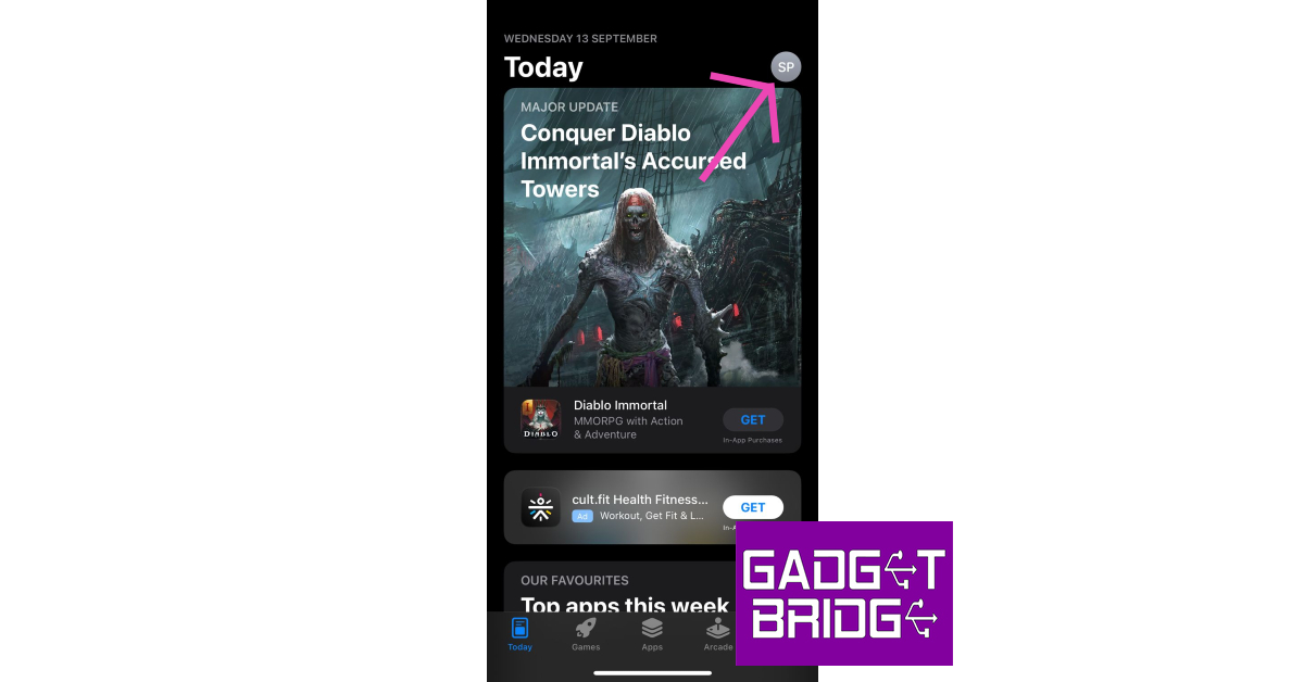 ステップ1:起動しますApp StoreiPhoneでタップしますプロフィールアイコン画面の右上隅に。