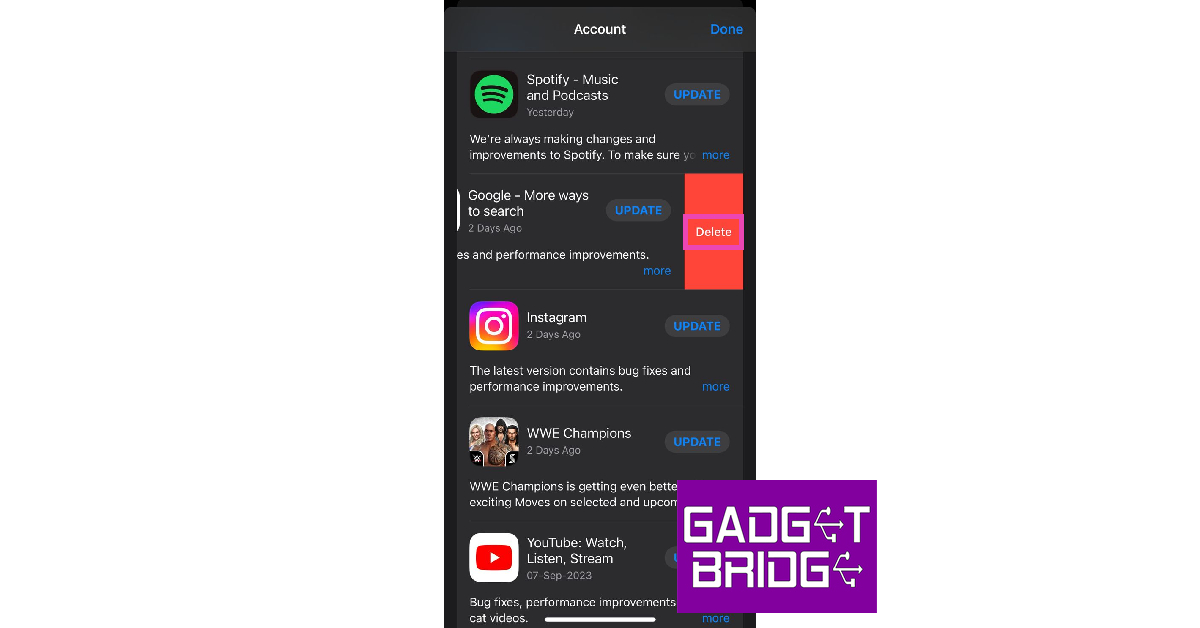 ステップ2: 下にスクロールしますデバイスからアンインストールするアプリに。