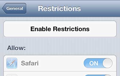 iPhone 5に制限を設定してパスワードを作成したら、多くの異なる機能をオフにすることができます。