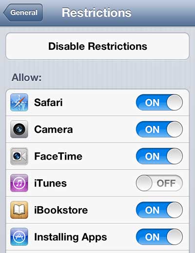 幸いなことに、Appleには呼ばれる機能が含まれています制限これにより、iTunesストアを含むiPhone 5の特定の機能を選択的に無効にすることができます。