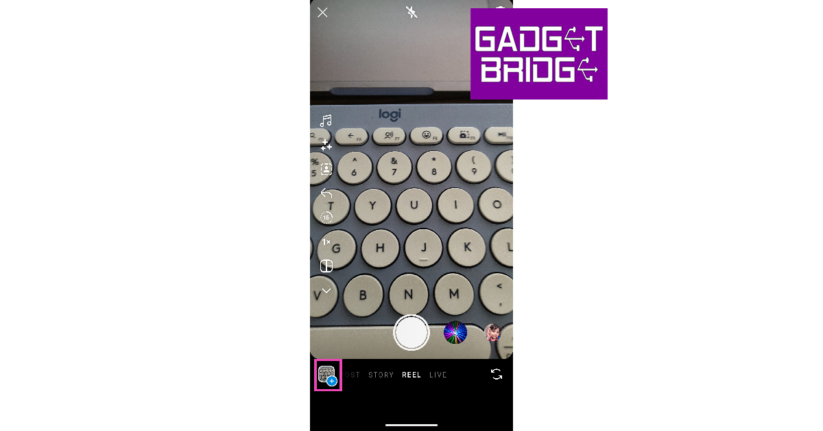ステップ4:タップしますギャラリーアイコン画面の左下隅にありますアップロードデバイスに保存したストーリー。
