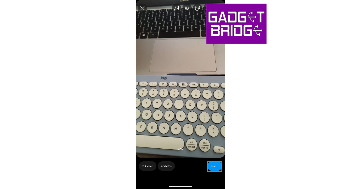 ステップ5:次のページで、ビデオを編集し、テキスト、音楽、ステッカー、またはフィルターを追加します。リールに場所を追加することもできます。打つ次終わったら。