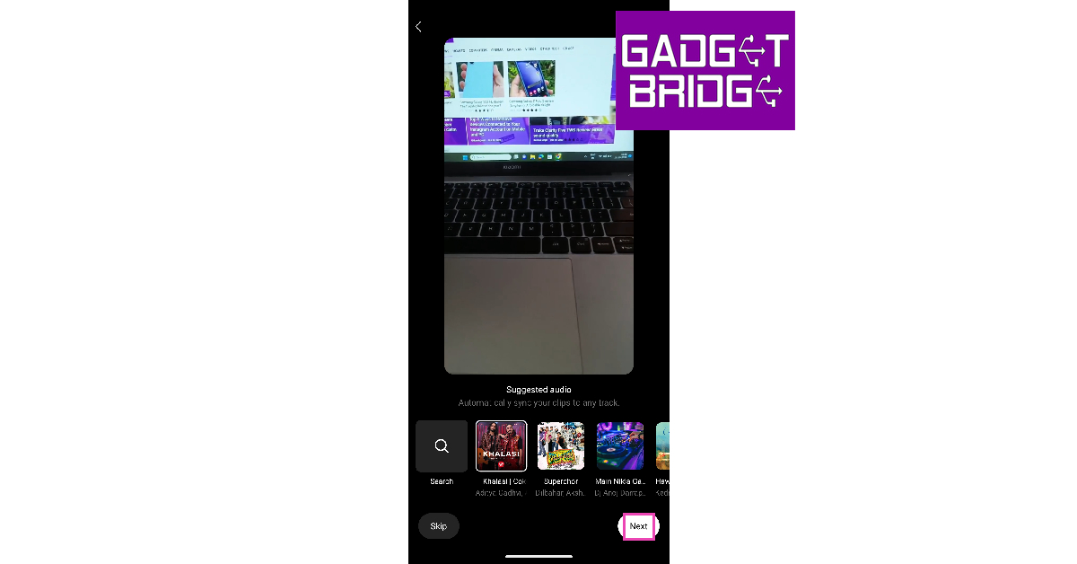 ステップ4:Aを追加します歌Instagramの推奨リストからリールに。あなたも選択することができますスキップこのステップ。