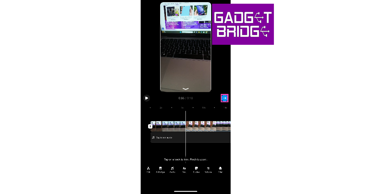 ステップ5:次のページでリールを編集します。ヒットします青い矢印アイコン終わったら。