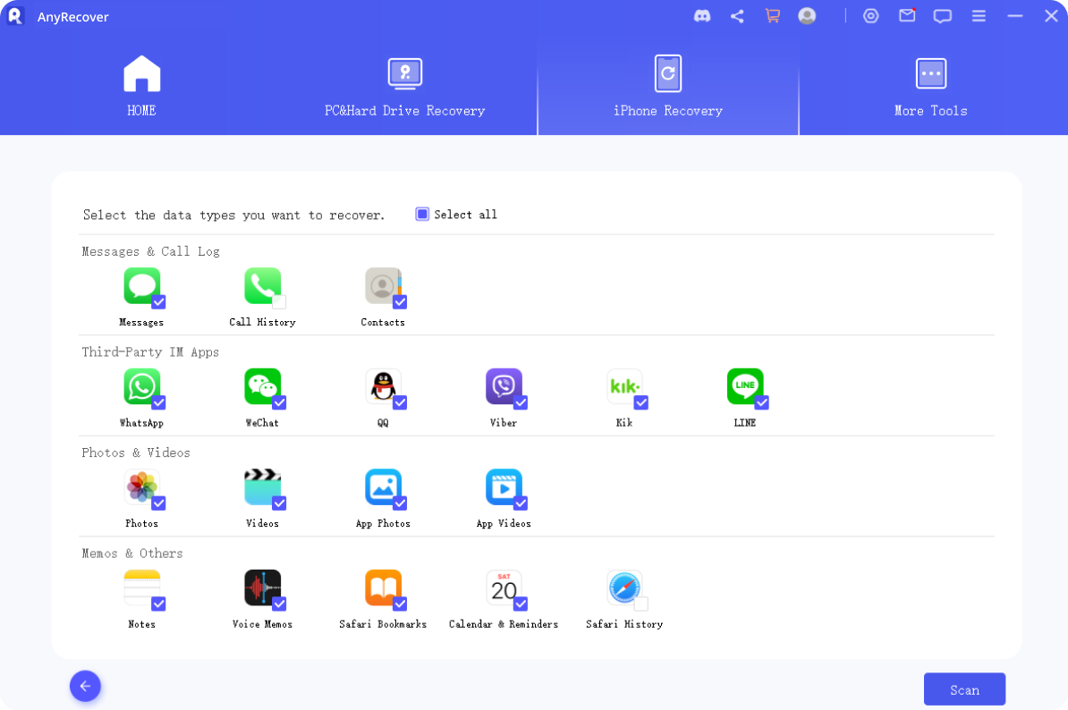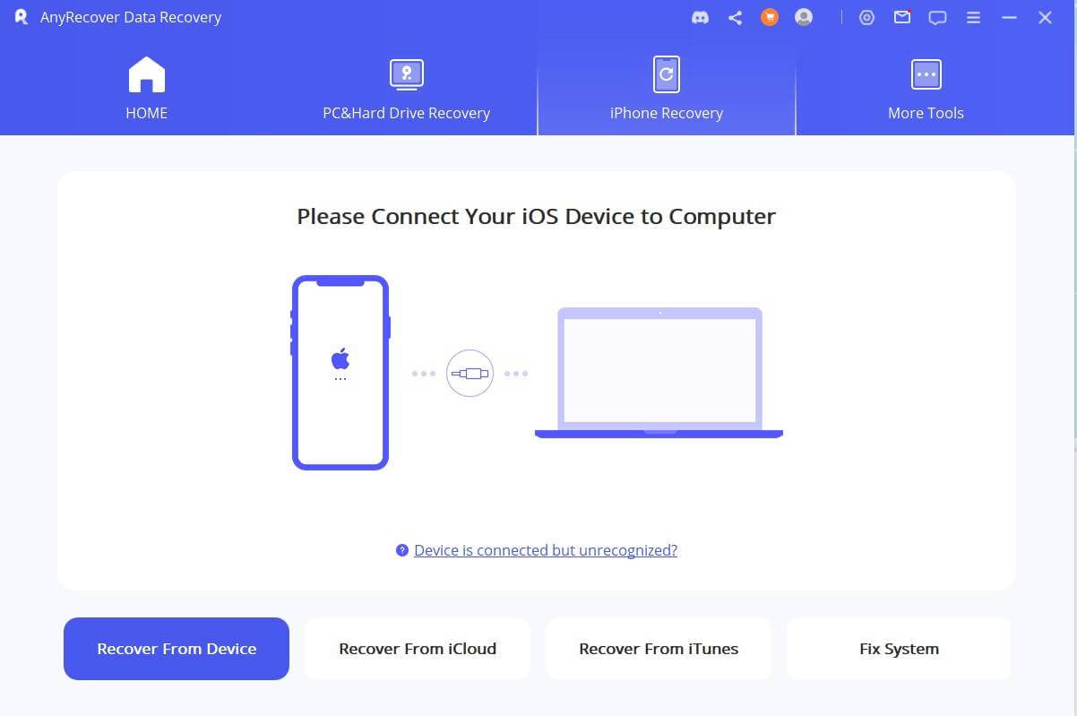 anyRecover、信頼できるデータ回収ツールは、Skypeアカウントの取得を支援することもできます。以前にデータをバックアップしていない場合、または最初の方法でメッセージを回復できない場合は、デバイスからのRecover Recoverを直接モードから回復することができます。このモードは、失われたデータを回復する前にプレビューすることをサポートするため、数秒で回復するためにいくつかの重要なデータを選択できます。これらの手順に従って(iPhoneとAndroidは同じ手順です)、Skype Acoount RecoveryにRecoverを使用します。