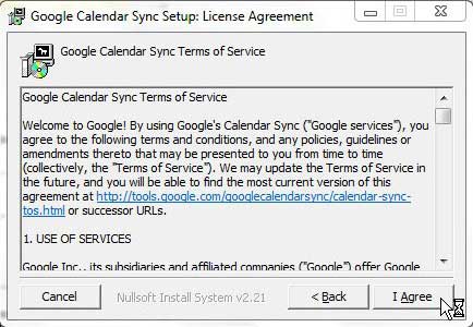 ステップ3:ダウンロードしたファイルをダブルクリックして、クリックします走る、次にクリックします同意しますGoogleカレンダー同期ライセンス契約ウィンドウのボタン。