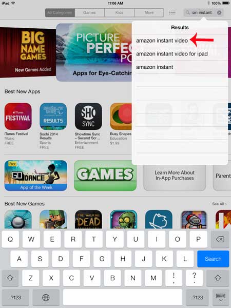ステップ3:「Amazon Instant」を検索フィールドに入力し、「Amazonインスタントビデオ」検索結果を選択します。
